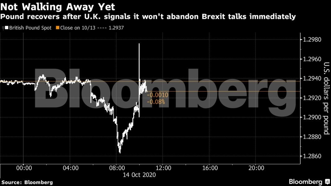 Οι ενδειξεις ότι το Ηνωμένο Βασίλειο θα παραμείνει και θα συνεχίσει τις διαπραγματεύσεις με την ΕΕ για την επίτευξη εμπορικής συμφωνίας και μετά την προθεσμία τις 15 Οκτωβρίου που είχε θέσει ο πρωθυπουργός Μπόρις Τζόνσον, ωθούν στην ανάκαμψη της λίρας από τα χαμηλά μίας εβδομάδας.