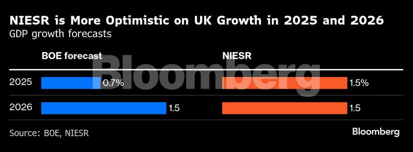 Τα κίνητρα και η ισχυρή αύξηση των μισθών σημαίνουν ότι η BOE αναμένεται να μειώσει τα επιτόκια μόνο μία ακόμη φορά φέτος. Το NIESR αναμένει επίσης ότι τα επιτόκια θα διαμορφωθούν στο 4%, υψηλότερα από ό,τι υπονοούσε η πρόσφατη ανάλυση της BOE.
