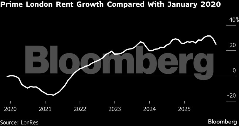 Τα ενοίκια στις πιο ακριβές γειτονιές του Λονδίνου υποχώρησαν για πρώτη φορά έπειτα από περισσότερα από τέσσερα χρόνια, καθώς η αυξημένη προσφορά ακινήτων άρχισε να αποσυμπιέζει την αγορά μισθώσεων της πόλης.
