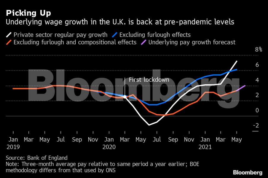 Η άνοδος είναι ενδεικτική ανάκαμψης από τη μεγαλύτερη οικονομική ύφεση εδώ και 300 χρόνια. Αν και η Τράπεζα της Αγγλίας αναμένει ότι οι τάσεις στην αγορά εργασίας θα αποδειχθούν προσωρινές, οι υπεύθυνοι χάραξης πολιτικής προειδοποίησαν αυτόν τον μήνα ότι η επίτευξη του στόχου του πληθωρισμού 2% θα απαιτήσει έναν μικρό περιορισμό των μέτρων νομισματικής στήριξης.