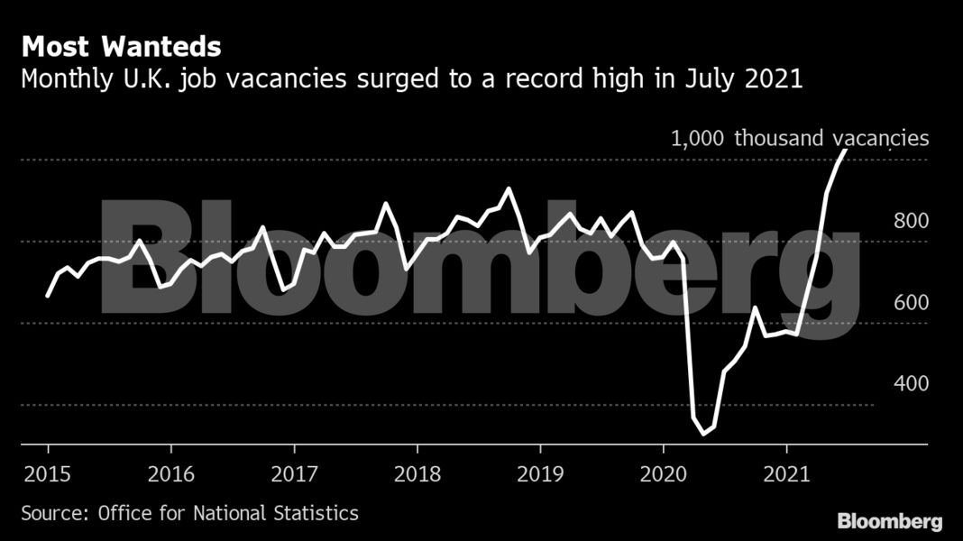 Πάνω από 1 εκατομμύριο είναι οι νέες κενές θέσεις εργασίας στη Μεγάλη Βρετανία, καθώς η χαλάρωση των μέτρων περιορισμού φέρνει σημαντικές ανακατατάξεις στην αγορά εργασίας της Γηραιάς Αλβιώνας.