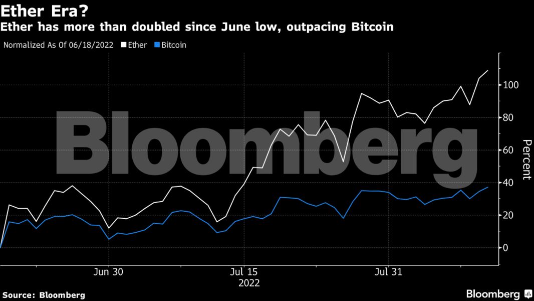 Η αξία του ενισχύθηκε έως και 4,1% την Πέμπτη στην Ασία και διαπραγματευόταν κοντά στα 1.890 δολάρια στις 1:58 μ.μ. στην αγορά του Τόκιο, πρόκειται για επίπεδο υπερδιπλάσιο από το χαμηλό του Ιουνίου κάτω όταν και βρέθηκε κάτω από τα 900$. Αξίζει να σημειωθεί ότι η ανάκαμψη του Ether ξεπέρασε κατά πολύ αυτήν του βασιλιά των κρυπτονομισμάτων, Bitcoin κατά την ίδια περίοδο.