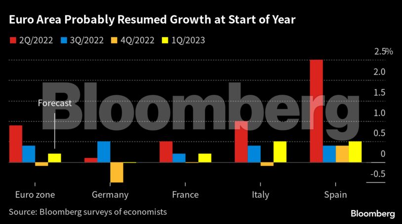 Τρεις από τις τέσσερις μεγαλύτερες οικονομίες της ευρωζώνης κατέγραψαν ανάπτυξη στις αρχές του 2023 – ενισχύοντας την πεποίθηση ότι το μπλοκ θα αποφύγει την ύφεση, παρά το γεγονός ότι ο πληθωρισμός παραμένει μια σημαντική απειλή.