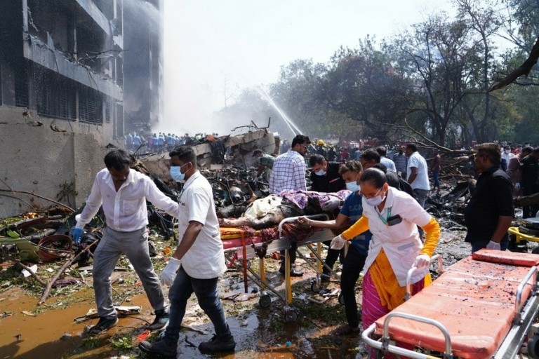 Το αεροπλάνο που μόλις πριν από ένα λεπτό βρισκόταν με ασφάλεια στον διάδρομο προσγείωσης του Αχμενταμπάντ είχε πλέον τυλιχθεί στις φλόγες, σε απόσταση μόλις ενός μιλίου από το αεροδρόμιο.