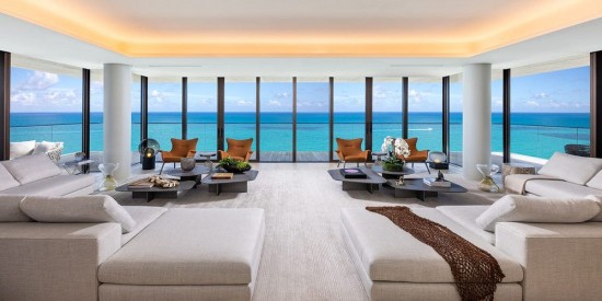 Η κατοικία των 156 τ.μ περιλαμβάνει ολόκληρο τον ένατο όροφο και προσφέρει πανοραμική θέα στον ωκεανό, την ακτή και το αστικό τοπίο του Μαϊάμι.