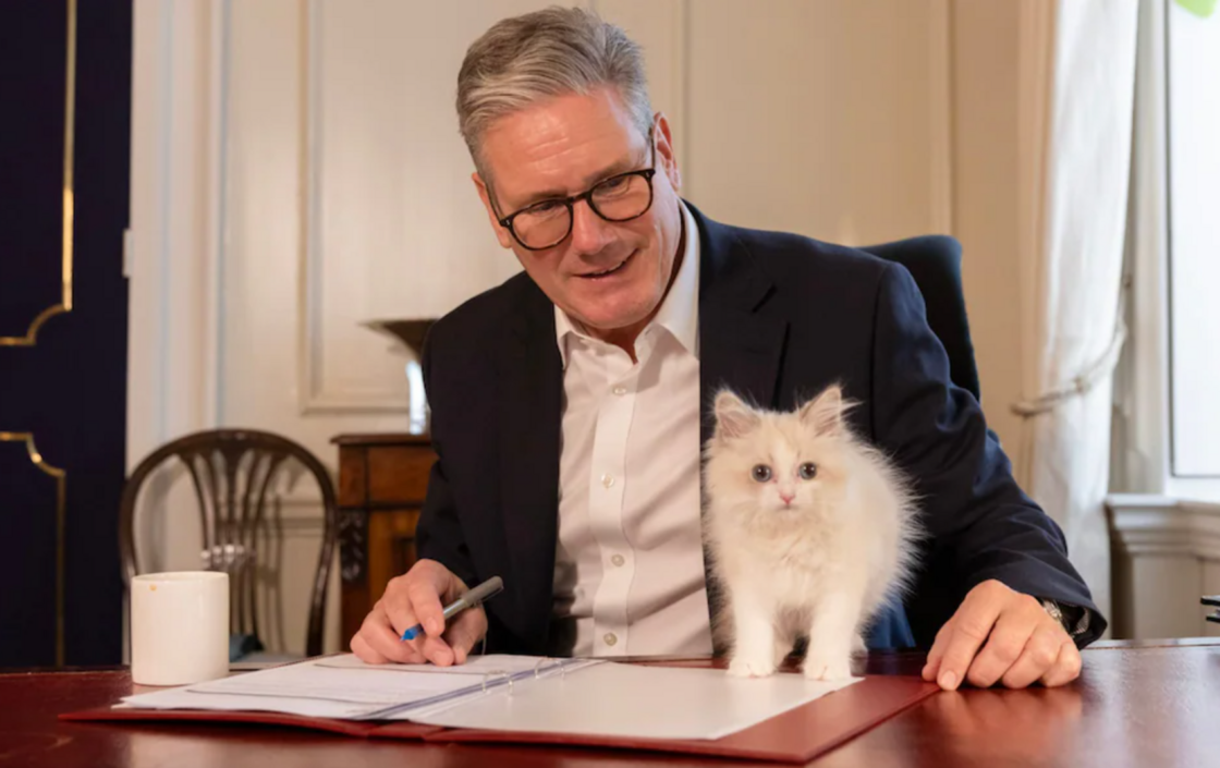 Εχθές, Σάββατο (21/9), δόθηκε στη δημοσιότητα μια φωτογραφία του Βρετανού πρωθυπουργού μαζί με τον Prince, η οποία δείχνει το μικρό γατάκι να έχει πηδήξει πάνω στο γραφείο και να έχει βάλει τις πατούσες του στα χαρτιά του Κιρ Στάρμερ.