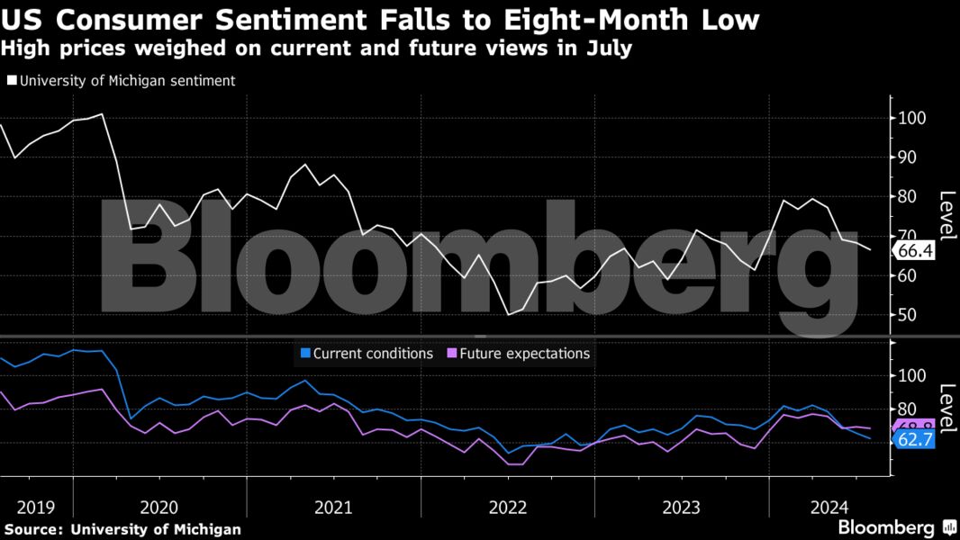 Το καταναλωτικό κλίμα στις ΗΠΑ υποχώρησε τον Ιούλιο σε χαμηλό οκτώ μηνών, καθώς οι υψηλές τιμές συνέχισαν να επιβαρύνουν τη στάση απέναντι στα προσωπικά οικονομικά.