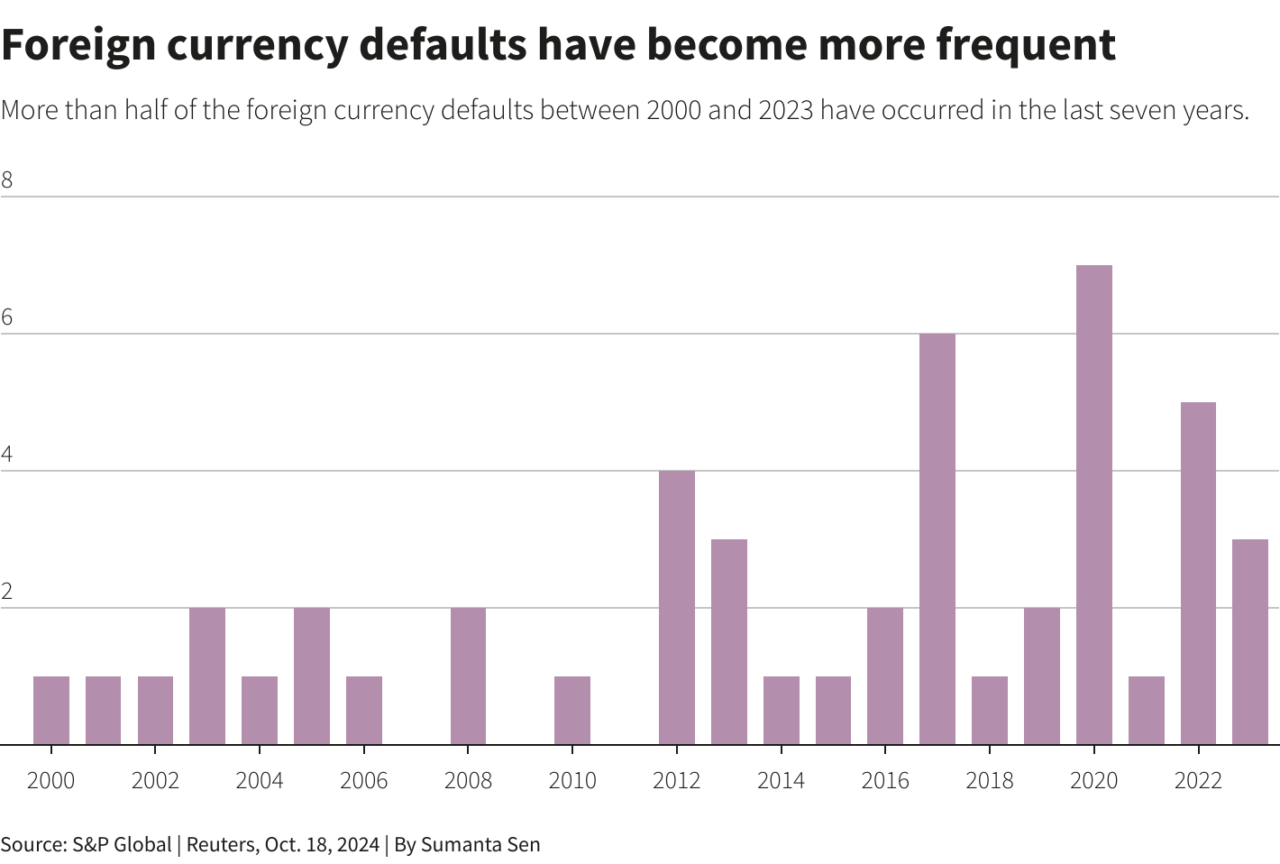 Πολλές από αυτές απέκτησαν για πρώτη φορά πρόσβαση σε ομολογιακό δανεισμό πριν από περίπου μια δεκαετία, κάτι που σημαίνει ότι οι πληρωμές έγιναν ληξιπρόθεσμες ακριβώς όταν τα παγκόσμια επιτόκια αυξήθηκαν, θέτοντας την προσιτή αναχρηματοδότηση εκτός εμβέλειας.