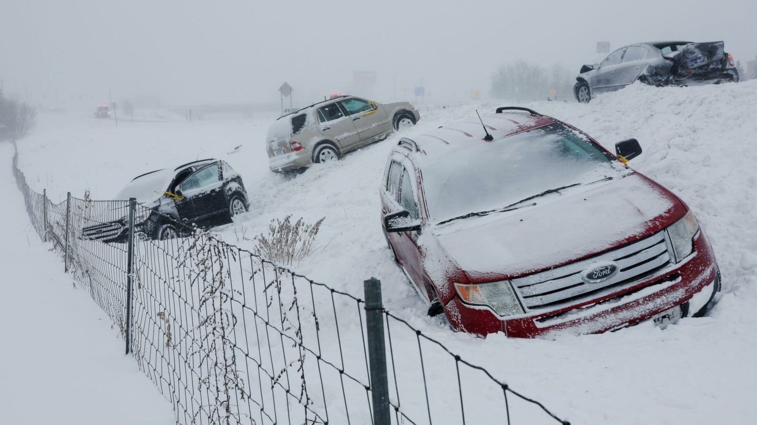 Snowstorm involving 50 vehicles, Ohio Turnpike through Sandusky County, USA.