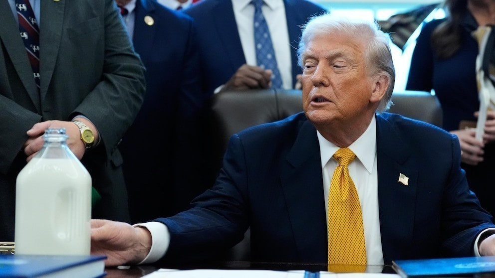 Ένα από τα πιο τρελά πράγματα ήταν ότι ο Τραμπ μιλούσε για ένα σοβαρό ζήτημα πολέμου και ειρήνης κατά τη διάρκεια μιας εκδήλωσης στο Οβάλ Γραφείο για την προώθηση του… πλήρους γάλακτος που τα σχολεία θα μπορούν να σερβίρουν στα παιδιά σύμφωνα με έναν νέο νόμο που ψηφίστηκε πρόσφατα.
