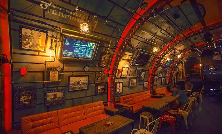 Με ναυτικούς χάρτες και τορπίλες να κρέμονται στους τοίχους και το ταβάνι, το σκηνικό μοιάζει περισσότερο με το εσωτερικό ενός υποβρυχίου την περίοδο του ψυχρού πολέμου, όμως στην πραγματικότητα το ρουμάνικο υποβρύχιο είναι ένα μπαρ, που πάει τους πελάτες τους στα βάθη της θάλασσας.