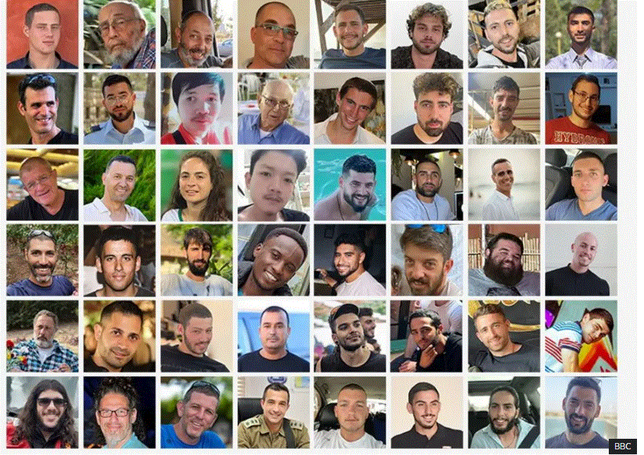 Όλοι, εκτός από έναν, βρίσκονται μεταξύ των 251 ανθρώπων που απήχθησαν στις 7 Οκτωβρίου 2023, κατά τη διάρκεια της επίθεσης της Χαμάς στο νότιο Ισραήλ, όπου περίπου 1.200 άνθρωποι σκοτώθηκαν. Το Ισραήλ απάντησε με μια μεγάλης κλίμακας στρατιωτική επιχείρηση στη Γάζα, στην οποία πάνω από 67.000 άνθρωποι έχουν χάσει τη ζωή τους, σύμφωνα με το υπουργείο Υγείας που ελέγχεται από τη Χαμάς.