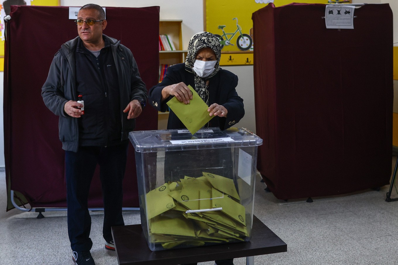 Ο Κιλιτσντάρογλου μετέβη στο δημοτικό σχολείο Arjantin της Άγκυρας μαζί με τη σύζυγό του, υπό δρακόντεια μέτρα ασφαλείας.