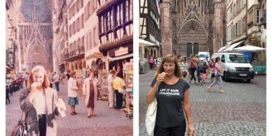 Επιστρέφοντας στο Στρασβούργο, στη Χαϊδελβέργη και στην Κολωνία της Γερμανίας, τα μέρη που επισκέφθηκε για πρώτη φορά ως 27χρονη, η Λίζα έβγαλε ακριβώς τις ίδιες φωτογραφίες και μάλιστα με την ίδια πόζα.