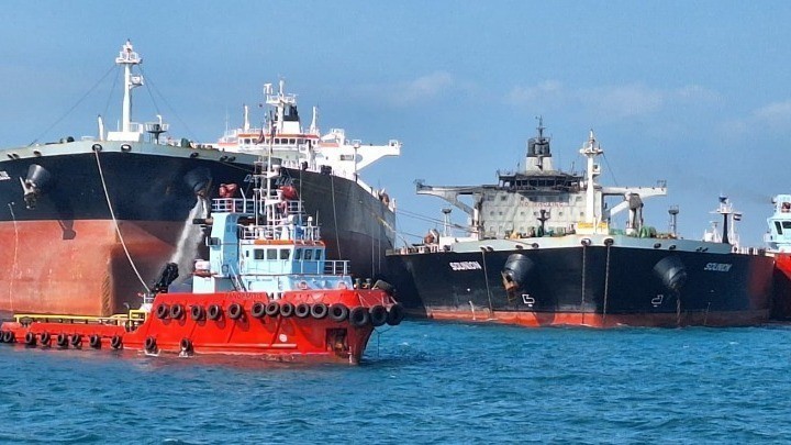 Υπενθυμίζεται ότι το MV Sounion έχει πιάσει φωτιά και είναι αγκυροβολημένο.