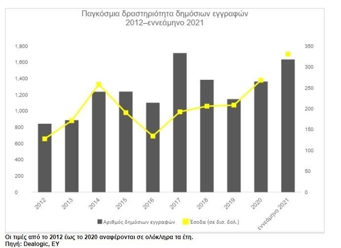 Η παγκόσμια αγορά δημόσιων εγγραφών συνέχισε να αναπτύσσεται στη διάρκεια του τρίτου τριμήνου του 2021, το οποίο ήταν το πιο ενεργό τρίτο τρίμηνο των τελευταίων 20 ετών ως προς τον αριθμό των συναλλαγών, αλλά και τα αντληθέντα κεφάλαια.