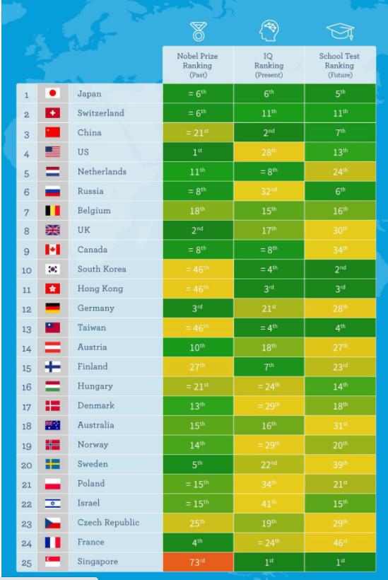 Πολλές οι ερωτήσεις που μας απασχολούν. Ποιος λαός συμβάλλει περισσότερο στην πρόοδο και στην εξέλιξή μας; Ποια χώρα έχει το υψηλότερο IQ και τους πιο έξυπνους μαθητές;