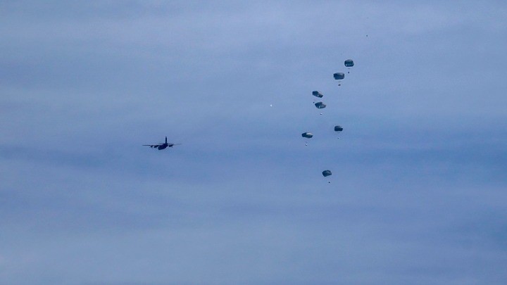 Στο πλαίσιο της επιχείρησης έμπρακτης στήριξης των ανθρώπων που υποφέρουν στη Γάζα, την πρώτη ρίψη βοήθειας πραγματοποίησαν οι ΗΠΑ με αεροσκάφη C130. Τα φορτία περιελάμβαναν 35.000 γεύματα.