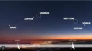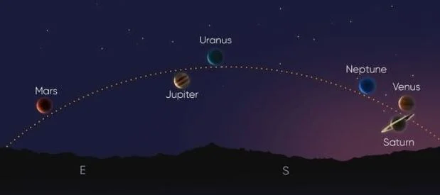 Ορατοί με γυμνό μάτι θα είναι τα επόμενα 24ωρα η Αφροδίτη, ο Κρόνος, ο Δίας και ο Άρης κατά μήκος ενός τόξου που διασχίζει τον ουρανό από τα δυτικά προς τα ανατολικά. Στην μεγάλη αυτή ευθυγράμμιση μετέχουν και οι πλανήτες Ουρανός και Ποσειδώνας, οι οποίοι όμως θα είναι αόρατοι στο γυμνό μάτι.