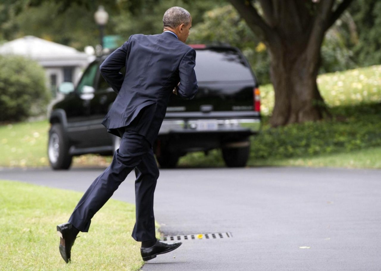 Πρόσφατα μάλιστα βγαίνοντας από τον Λευκό Οίκο, χαιρετώντας την κάμερα, έκανε στροφή 180 μοιρών και γύρισε να το πάρει!