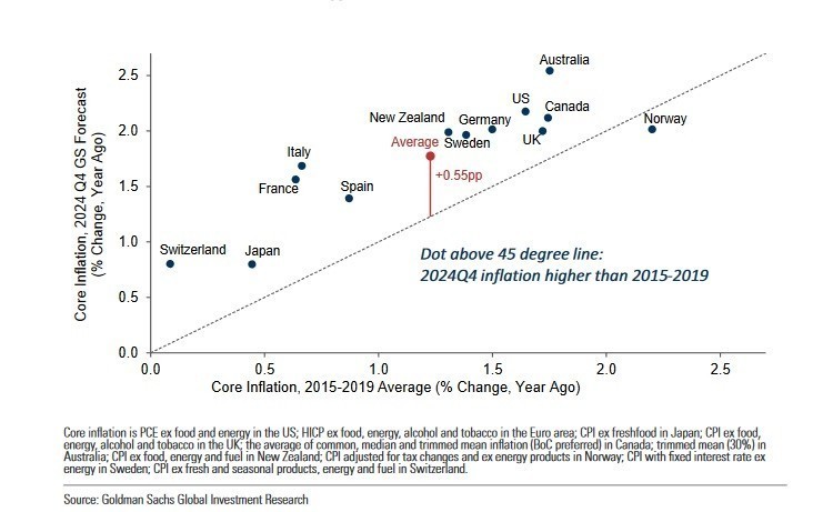 Μέχρι τότε αναμένεται πως οι κεντρικές τράπεζες άλλων ανεπτυγμένων οικονομιών όπως της Βρετανίας και του Καναδά θα έχουν ξεκινήσει προγράμματα εξορθολογισμού των επιτοκίων, ενώ άλλες στη Λατινική Αμερική και την Ανατολική Ευρώπη θα βρίσκονται σε στάδιο ολοκλήρωσης παρόμοιων προγραμμάτων. Αντιθέτως, η Goldman Sachs αναμένει πως η ΕΚΤ και η Κεντρική Τράπεζα της Αυστραλίας δεν πρόκειται να προχωρήσουν σε αύξηση των επιτοκίων μέχρι το τέλος του 2022.