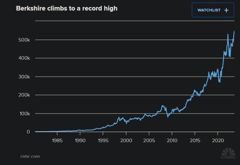 Οι μετοχές της Berkshire έχουν αυξηθεί σε ρεκόρ υψηλό δεδομένου και του υψηλού ρεκόρ των λειτουργικών της κερδών, σε σημείο που έχει μετατραπεί στην μη-τεχνολογική εταιρεία με τη μεγαλύτερη κεφαλαιοποίηση.