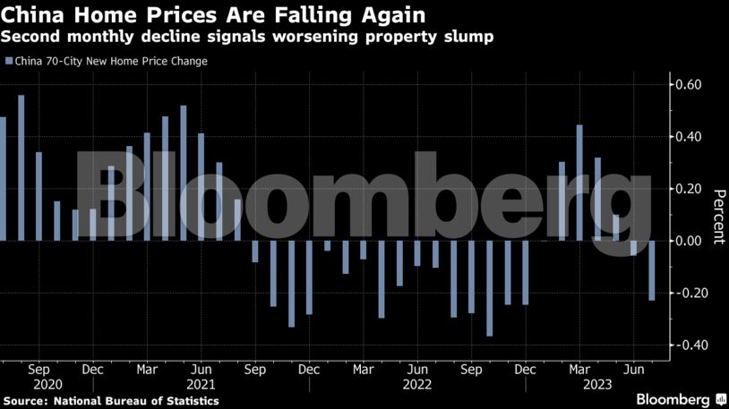 Οι τιμές των νεόδμητων ακινήτων μειώθηκαν για δεύτερο συνεχόμενο μήνα τον Ιούλιο, ενώ το Bloomberg υποστηρίζει πως τα πράγματα είναι ακόμα χειρότερα από τα επίσημα στοιχεία. Όπως ανέφερε ο αναλυτής του Bloomberg Intelligence, Άντριου Τσαν, οι απώλειες οι οποίες καταγράφουν οι εταιρείες αυτές θα περιορίσουν την ικανότητά τους να ολοκληρώσουν νέα ή μισοτελειωμένα πρότζεκτ, περιορίζοντας περαιτέρω το συναίσθημα των αγοραστών.