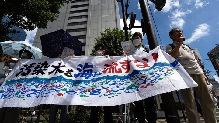 «Η θάλασσα δεν είναι σκουπιδοτενεκές της Ιαπωνίας», έγραφε ένα από τα πανό. «Σταματήστε αμέσως την απόρριψη μολυσμένων υδάτων».