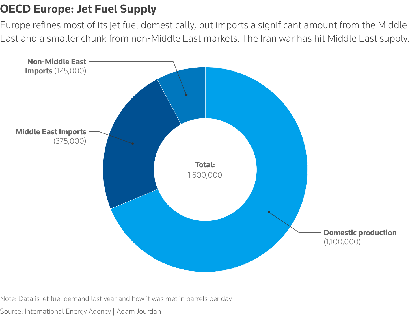 Ωστόσο, μερικοί από τους άλλους κορυφαίους εξαγωγείς καυσίμων αεροσκαφών είναι το Κουβέιτ και το Μπαχρέιν, των οποίων το προϊόν έχει παγιδευτεί λόγω του κλεισίματος των Στενών του Ορμούζ, σύμφωνα με στοιχεία της Kpler.