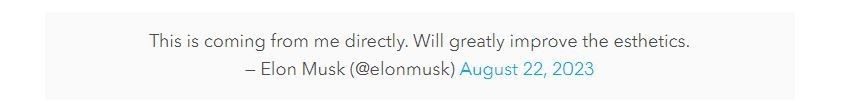 Την αλλαγή είχε προαναγγείλει ο Μασκ, ο οποίος έγραψε τον Αύγουστο: «Αυτό προέρχεται απευθείας από εμένα. Θα βελτιώσει σημαντικά την αισθητική».