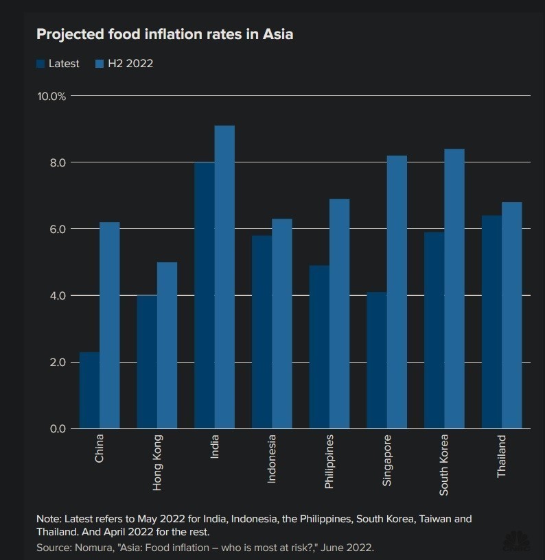 Σύμφωνα με τη Nomura, χώρες όπως η Σιγκαπούρη, η Νότια Κορέα, οι Φιλιππίνες και η Ινδία θα βιώσουν τις μεγαλύτερες αυξήσεις των τιμών των τροφίμων το β’ εξάμηνο του έτους.