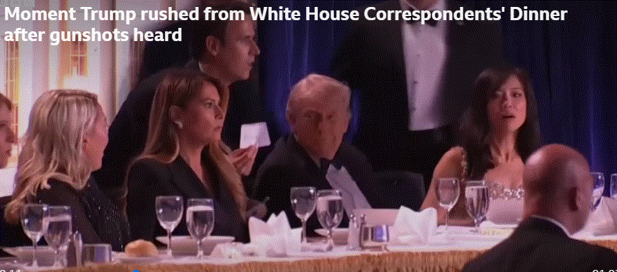 Στιγμές πανικού σημειώθηκαν στο δείπνο της Ένωσης Ανταποκριτών του Λευκού Οίκου, όταν ο Πρόεδρος των Ηνωμένων Πολιτειών Ντόναλντ Τραμπ απομακρύνθηκε εσπευσμένα από την αίθουσα μετά από πυροβολισμούς που ακούστηκαν στον χώρο της εκδήλωσης.