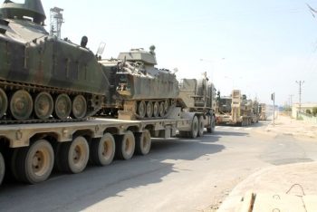 “Δυο κονβόι φορτηγών φορτωμένα με περίπου 40 τανκς αναχώρησαν από τα σύνορα της Τουρκίας με τη Συρία σήμερα το απόγευμα, και η συνοδεία αναμένεται να αποσταλεί στην Αδριανούπολη με τρένο από το λιμάνι του Ισκεντερούμ.