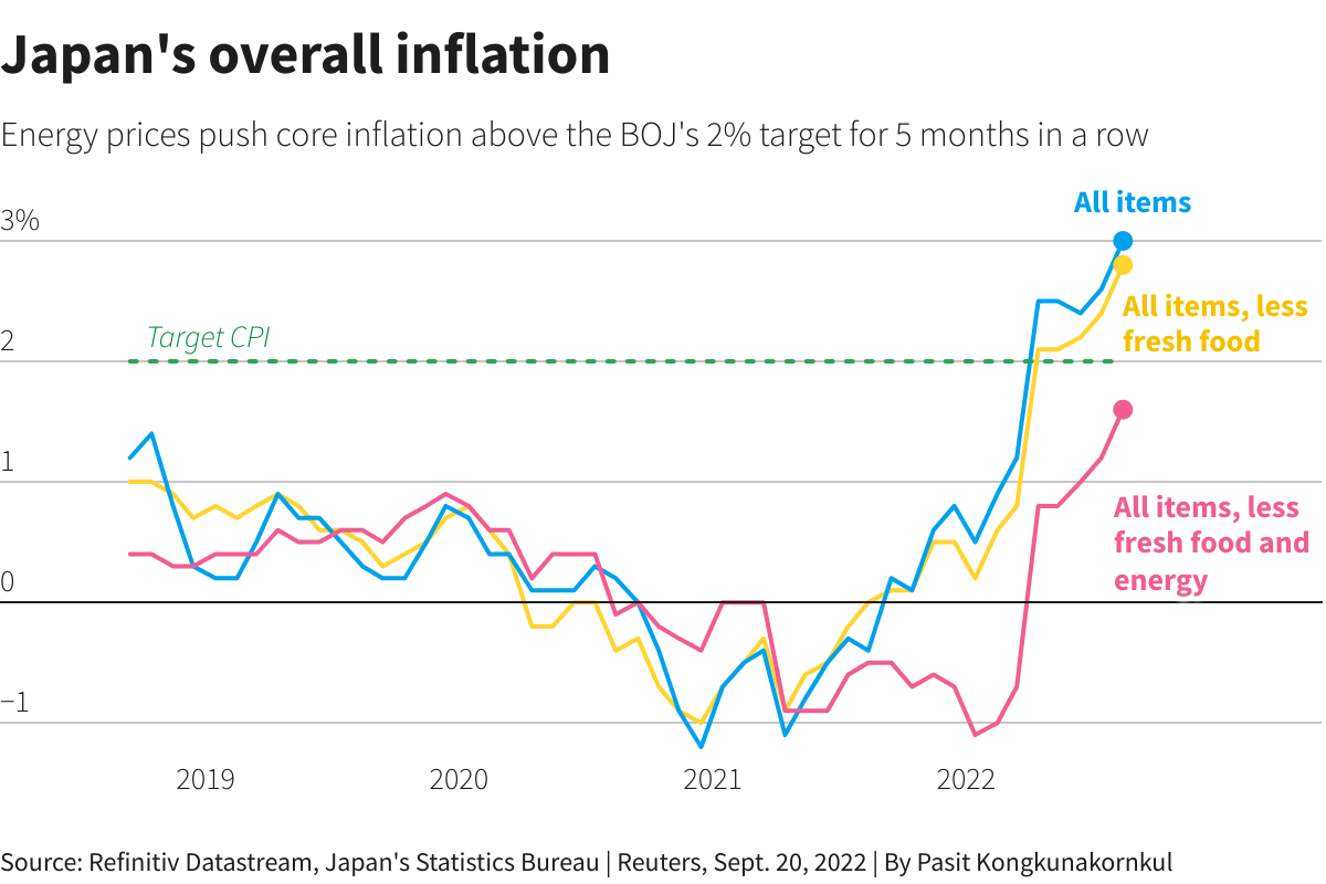 Ο ρυθμός αύξησης πληθωρισμού του Αυγούστου ενίσχυσε τις υποψίες μεταξύ των οικονομολόγων ότι η πίεση των τιμών θα διαρκέσει περισσότερο από ό,τι ανέμενε η Τράπεζα της Ιαπωνίας (BOJ), αν και πολλοί εξακολουθούν να αναμένουν ότι δεν θα υπάρξει άμεση αλλαγή στην εξαιρετικά χαλαρή πολιτική της.