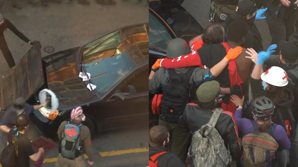 Πολλές ανθρώπινες ζωές κινδύνεψαν αργά το απόγευμα της Κυριακής στο Σιάτλ, όταν ένα αυτοκίνητο καρφώθηκε σε πλήθος διαδηλωτών για τον θάνατο του Τζορτζ Φλόιντ, χτύπησε σε οδόφραγμα, και στη συνέχεια ο οδηγός του βγήκε από το αυτοκίνητό του κραδαίνοντας ένα πιστόλι.