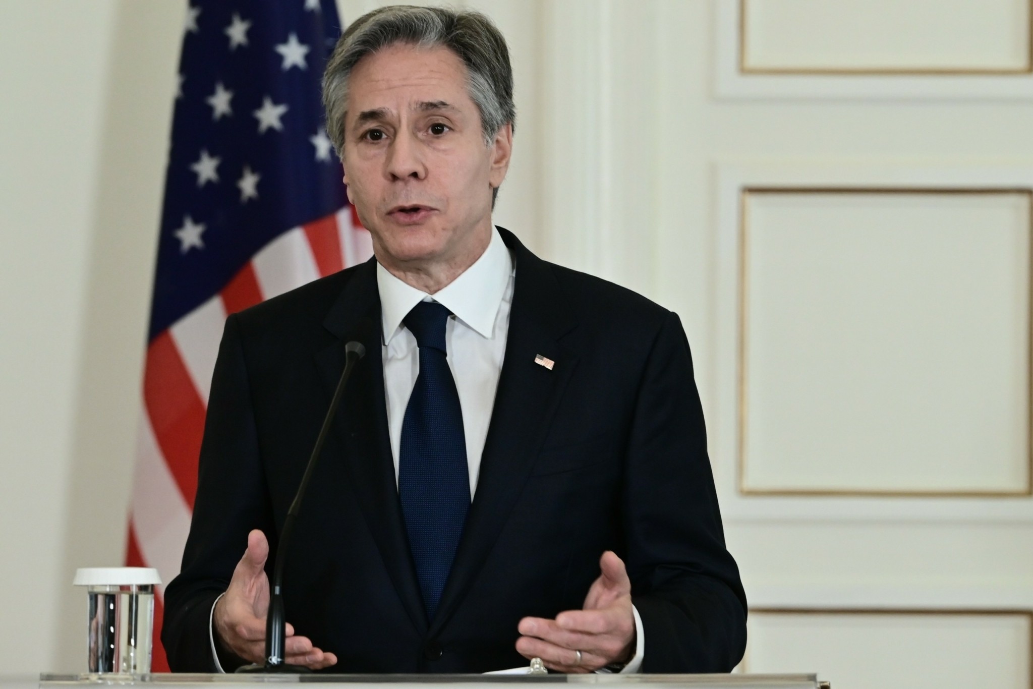 Για το θέμα του κ. Μπλίνκεν είπε πως πως «αδημονούμε να αναπρογραμματίσουμε την επίσκεψη μόλις το επιτρέψουν οι συνθήκες».