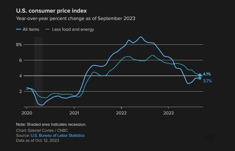 Ο πληθωρισμός στις ΗΠΑ κυμάνθηκε στο 3,7% τον Σεπτέμβριο, ενώ ο δομικός βρέθηκε στο 4,1%. Αν και τα δύο νούμερα αυτά είναι πολύ υψηλότερα από τον πληθωριστικό στόχο του 2% της Fed, είναι τουλάχιστον πολύ καλύτερα από την εποχή που ο πληθωρισμός άγγιζε το 9%.