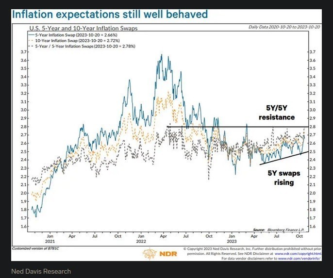 Αυτό το οποίο ανησυχεί τον Καλίς είναι πως το 5ετές κυμαίνεται λίγες μονάδες βάσης υπό του υψηλού του 2022, κάτι το οποίο ενδέχεται να αποτελεί ένδειξη για αύξηση του πληθωρισμού.