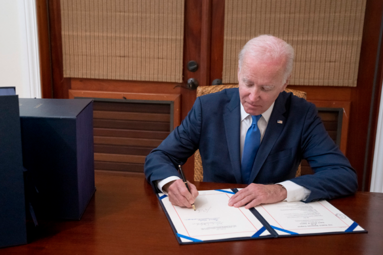 Ο Δημοκρατικός πρόεδρος, σε διακοπές στις αμερικανικές Παρθένες Νήσους, μεταφόρτωσε στο Twitter φωτογραφία που τον απαθανατίζει καθώς υπογράφει το κείμενο, το οποίο εγγυάται τη χρηματοδότηση του αμερικανικού ομοσπονδιακού κράτους – των δυνάμεων επιβολής της τάξης, των ενόπλων δυνάμεων, της διπλωματίας, των φορέων που ασκούν οικονομική πολιτική…- ως τον Σεπτέμβριο του 2023.