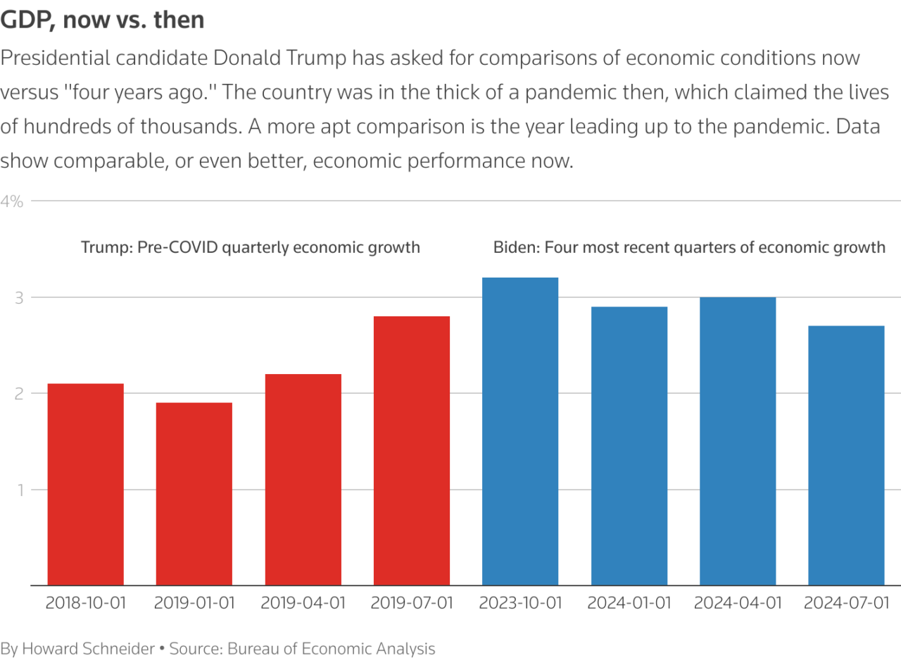 Όπως αναφέρει το Reuters, για να είναι πιο δίκαιος με τον εαυτό του, ο Τραμπ ίσως θα ήθελε να γυρίσει το ημερολόγιο ένα χρόνο πίσω, στο 2019, αλλά ακόμη και τότε τα αποτελέσματα είναι μικτά.