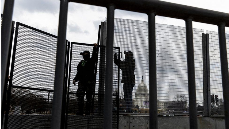 Πολλοί δρόμοι γύρω από το Καπιτώλιο που έγινε θέατρο αιματηρών συγκρούσεων στις 6 Ιανουαρίου, έχουν αποκλειστεί με συρματοπλέγματα και οδοφράγματα.