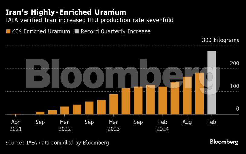 Το Ιράν εκτιμάται ότι παράγει πλέον το ισοδύναμο μιας βόμβας ανά μήνα σε ουράνιο εμπλουτισμένο κατά 60%, με το απόθεμα να έχει αυξηθεί δραματικά μέσα σε μόλις τρεις μήνες.