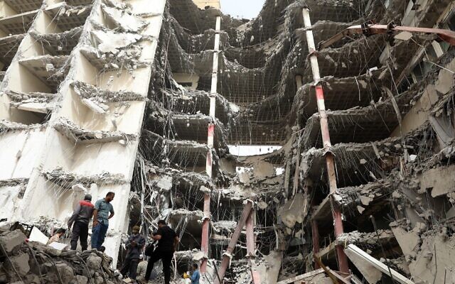 Στις 23 Μαΐου, το δεκαώροφο κτήριο κατοικιών Metropol, που βρισκόταν υπό ανέγερση στην Αμπαντάν, μια από τις κεντρικές πόλεις της επαρχίας Χουζεστάν, κατέρρευσε μερικώς στην καρδιά ενός πολυσύχναστου δρόμου.