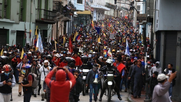 Κάπου 14.000 άνθρωποι έχουν ξεσηκωθεί σε όλη τη χώρα, διαδηλώνουν εναντίον της αύξησης του κόστους ζωής και απαιτούν κυρίως να μειωθεί η τιμή των καυσίμων. Η αστυνομία λογαριάζει ότι περίπου 10.000 εξ αυτών βρίσκονταν χθες στην πρωτεύουσα Κίτο.