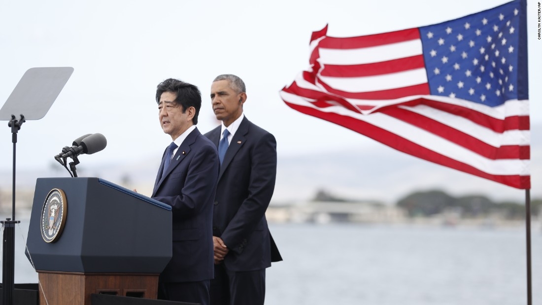 Ο Σίνζο Άμπε είναι ο πρώτος Ιάπωνας πρωθυπουργός εδώ και πολλές δεκαετίες που επισκέπτεται τη ναυτική βάση του Περλ Χάρμπορ, η αιφνιδιαστική επίθεση στην οποία ενέπλεξε και την Αμερική στον Β’ Παγκόσμιο Πόλεμο.