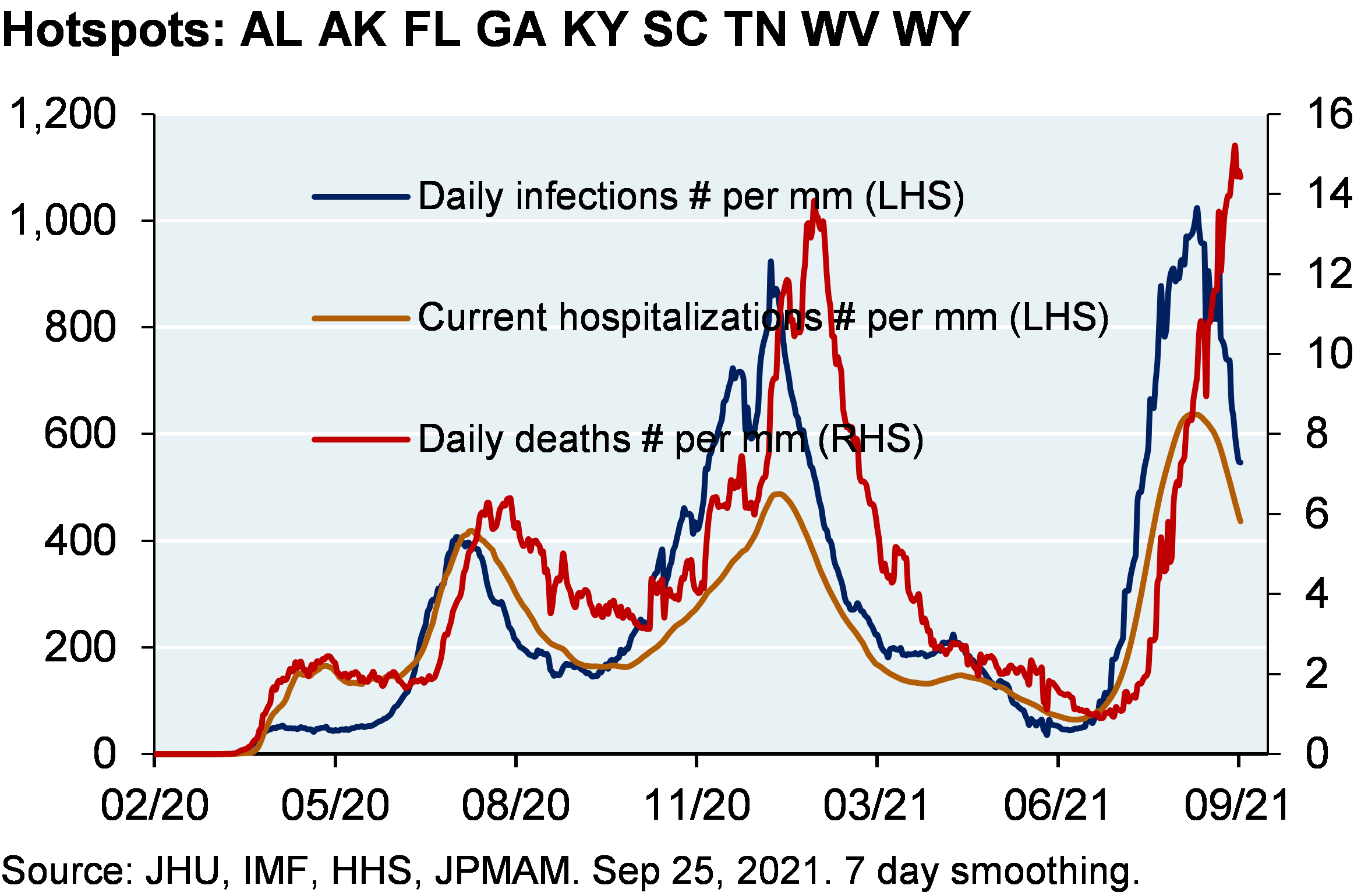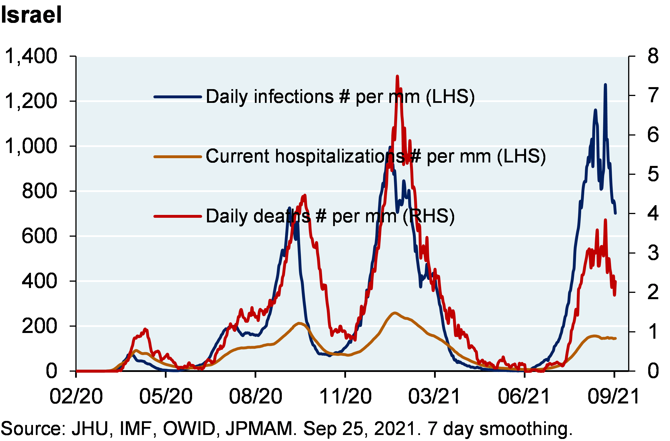 Τα νέα κρούσματα στις αναπτυσσόμενες οικονομίες μειώνονται λόγω της μείωσης των ποσοστών νόσησης με μεταλλάξεις Lambda και Gamma στη Λατινή Αμερική και Delta στην Ασία (αν και η θνησιμότητα αυξάνεται σε ορισμένες χώρες στην ανατολική Ευρώπη). Οι χώρες της Ασίας στις οποίες υπάρχουν πολλά κρούσματα δεν παίζουν μεγάλο ρόλο στην αλυσίδα εφοδιασμού αλλά παίζουν αρκετά σημαντικό ρόλο στην παραγωγή ημιαγωγών (π.χ. Μαλαισία).