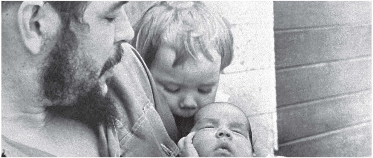 Ήμουν τριών χρόνων! Δεν θυμάμαι! Είναι, όμως, μια από τις αγαπημένες φωτογραφίες του άλμπουμ μου. Δείχνει το άλλο πρόσωπο του σκληρού επαναστάτη. Μας είχε μεγάλη αδυναμία. Έπαιζε μαζί μας με τις ώρες. Κι έπειτα, έπαιρνε τα όπλα και πήγαινε να πολεμήσει μακριά.