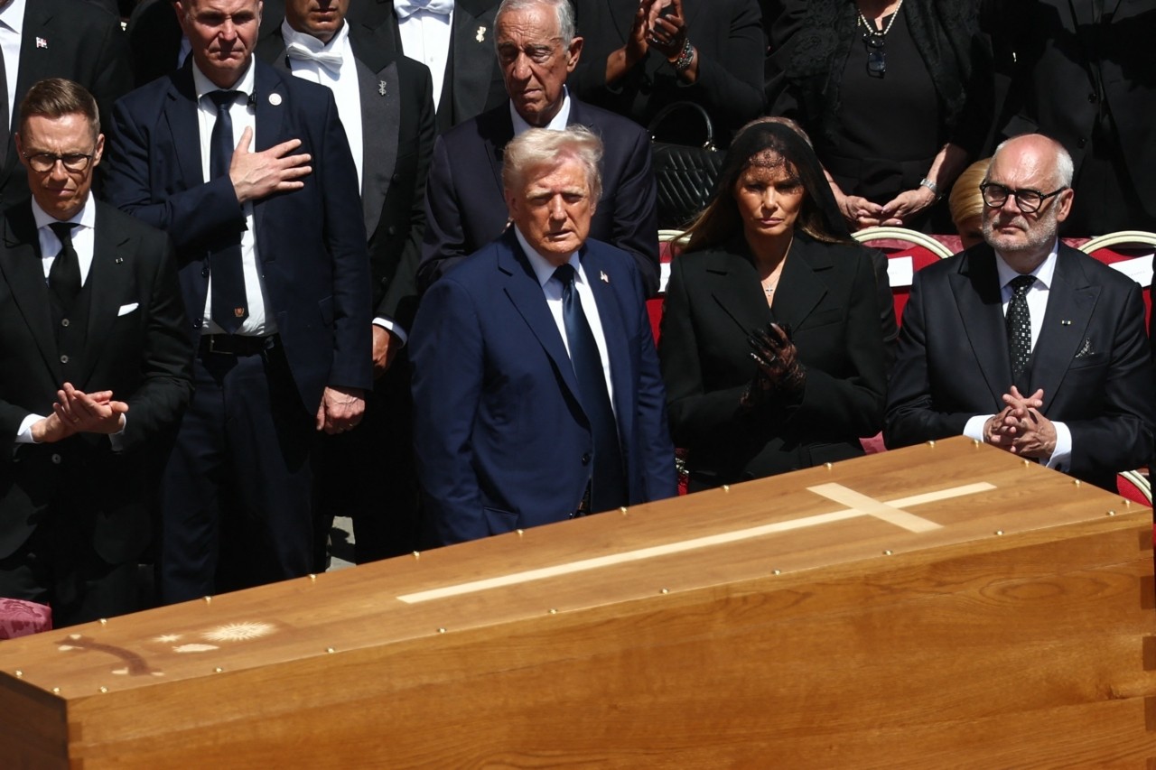 Ο Ντόναλντ Τραμπ «κατηγορήθηκε» ότι παραβίασε τον ενδυματολογικό κώδικα στην κηδεία του Πάπα, αφού έφτασε φορώντας μπλε κοστούμι και μπλε γραβάτα.