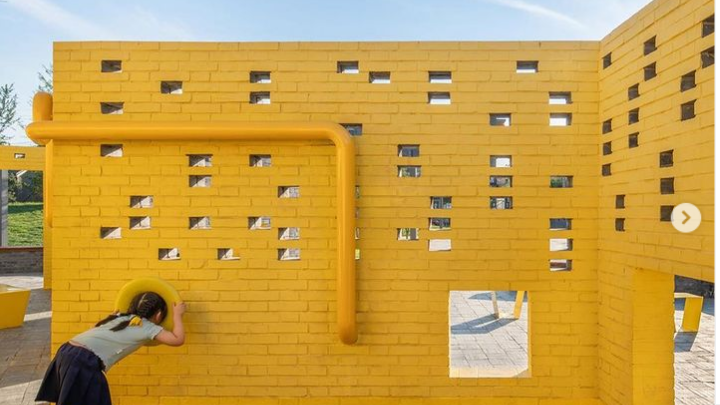 Ένα πάρκο με υπαίθρια «δωμάτια» που σχηματίζονται από χρωματιστά τούβλα έχει μεταμορφώσει μια γωνία δρόμου δίπλα σε ένα πάρκινγκ στο Πεκίνο σε χώρο για συνευρέσεις, συναθροίσεις και παιχνίδι, απευθυνόμενο σε όλες τις ηλικίες.