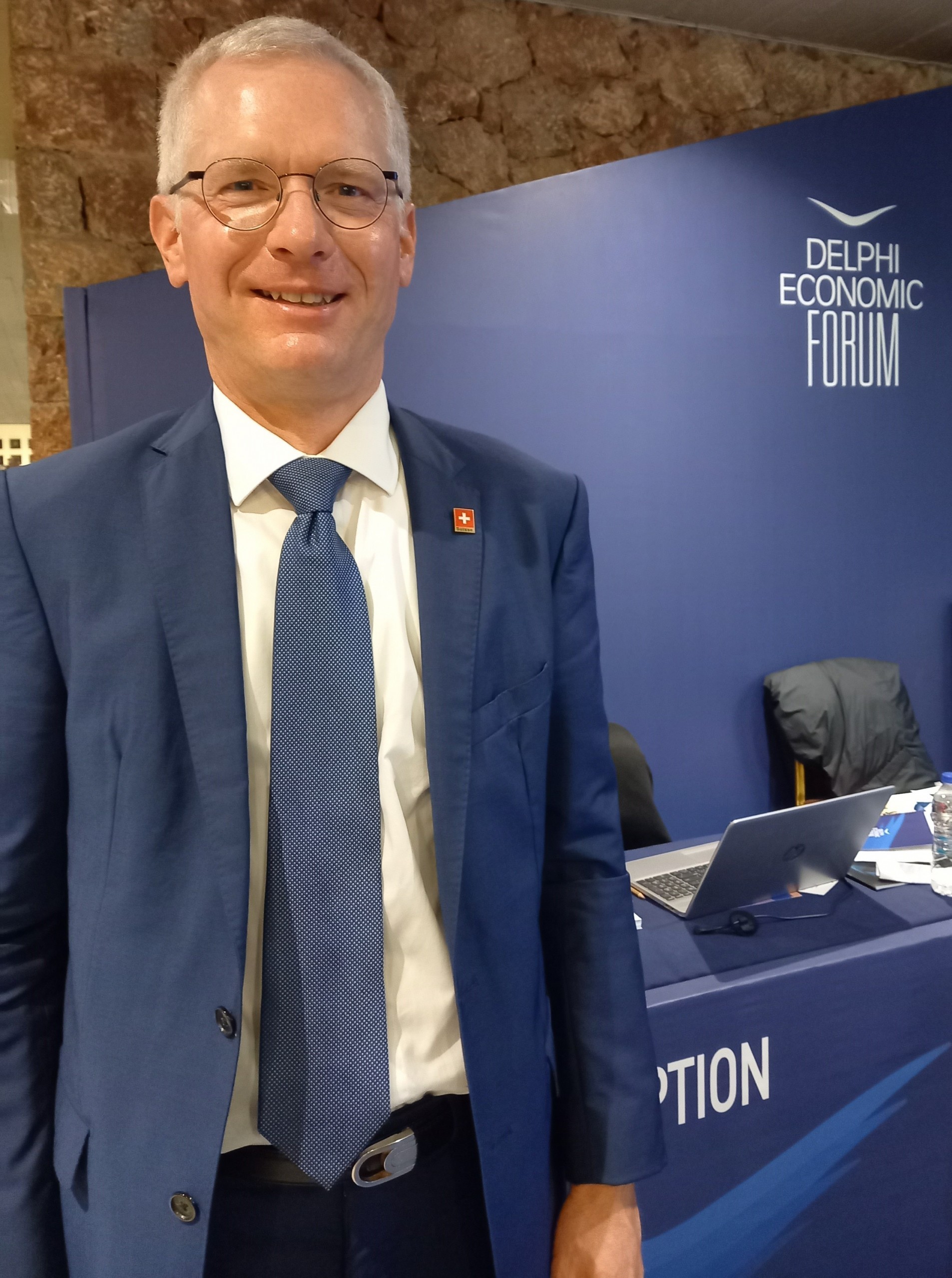 Μιλώντας στο newmoney από το 7ο Οικονομικό Φόρουμ των Δελφών, ο Ελβετός πρέσβης περιγράφει πώς ξεκίνησε η διαδικασία, εξηγεί γιατί τα ρωσικά μέσα ενημέρωσης είναι ακόμα ανοιχτά στην Ελβετία και επιμένει ότι κυρώσεις και ουδετερότητα μπορούν να συνυπάρχουν.